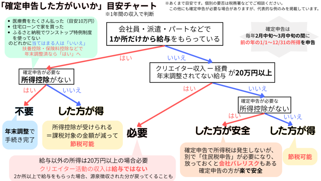 一方、クリエイターとして会社に属さずに収入を得たい場合は、確定申告がほぼ必須です。